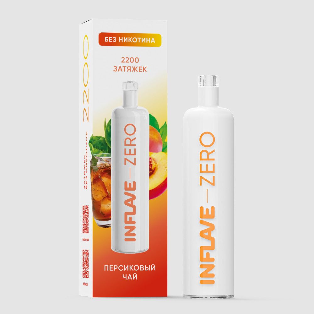 Электронная сигарета Inflave Zero 2200 затяжек Персиковый Чай со вкусом охлажденного черного чая с бархатной сладостью персикового сока на послевкусии.