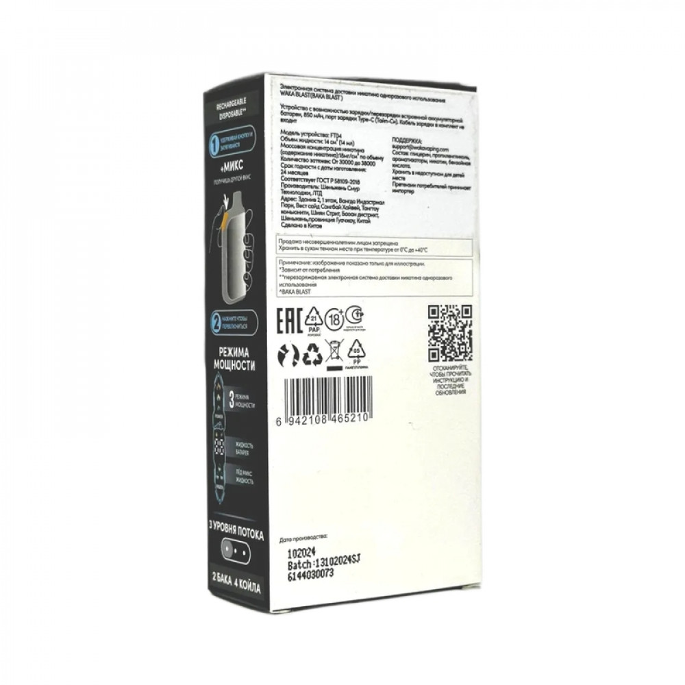 На складе Код товара: WAKA BLAST 38000 Hard - Кола + лимон микс